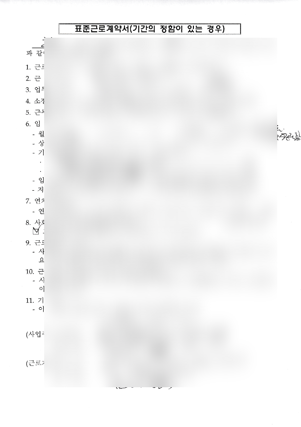 기간의 정함이 없는 경우, 기간제, 연소근로자, 건설일용근로자, 단시간근로자, 그리고 외국인근로자 등 7가지 유형에 따라, 표준근로계약서를 작성 해야합니다.