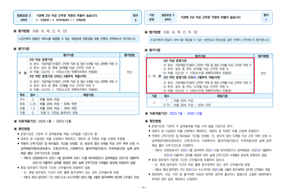 - 신규 기관 배려(2년 미만 기관): 연속 12개월 이상 근무자를 기준으로 산정하여 진입 장벽을 낮췄습니다.